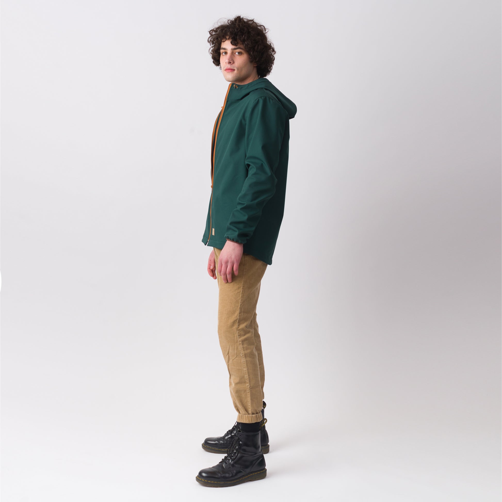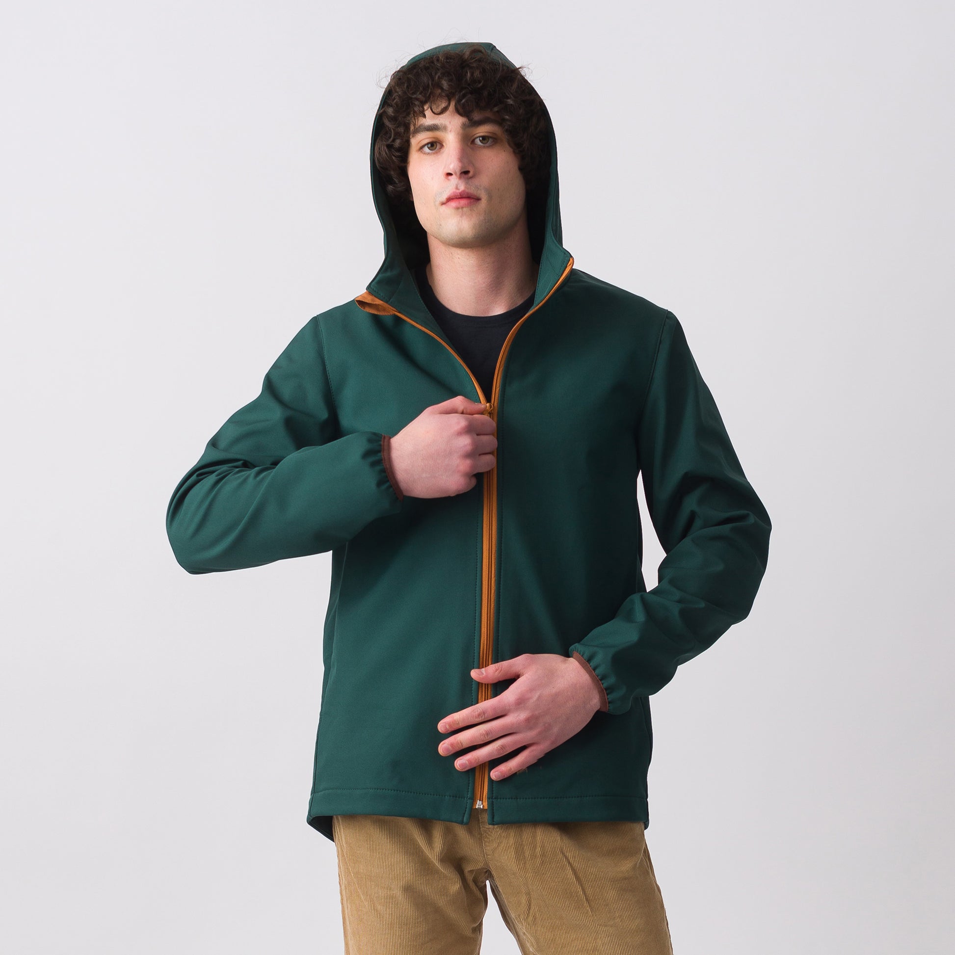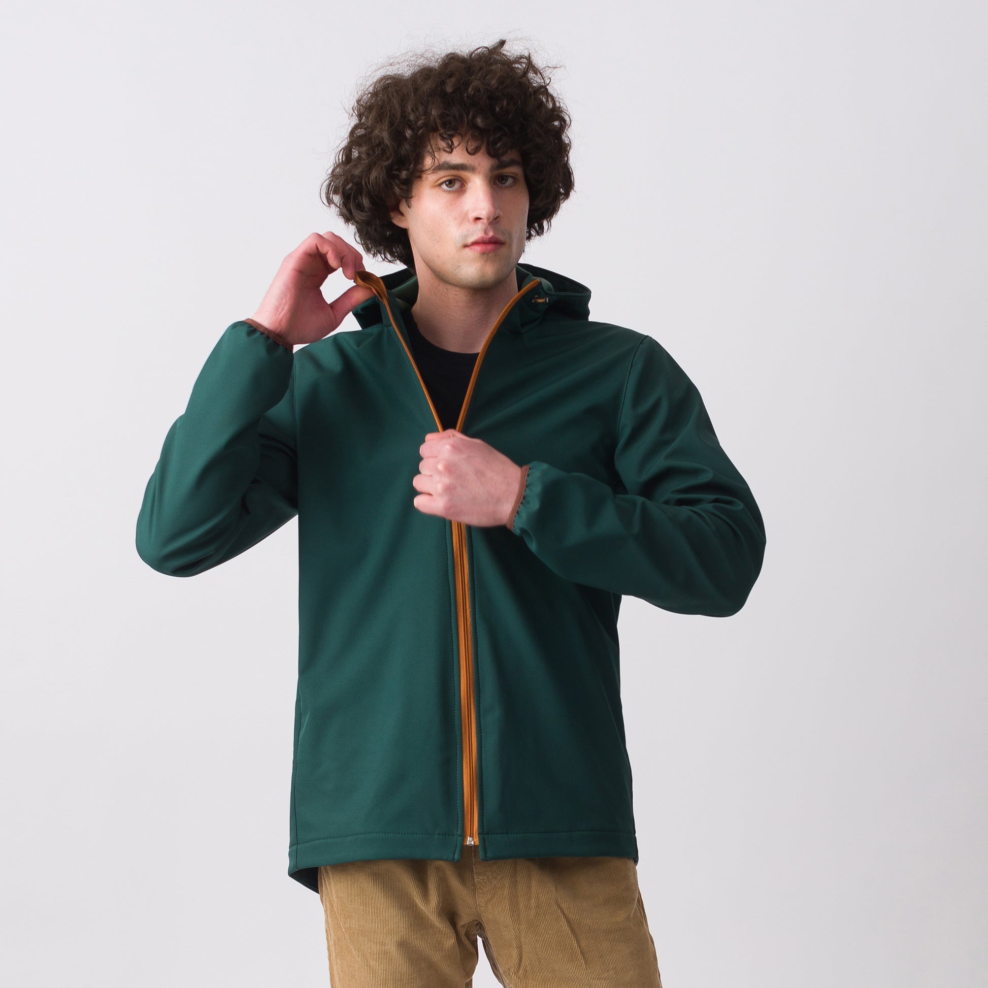 Forest green thick softshell coat for men