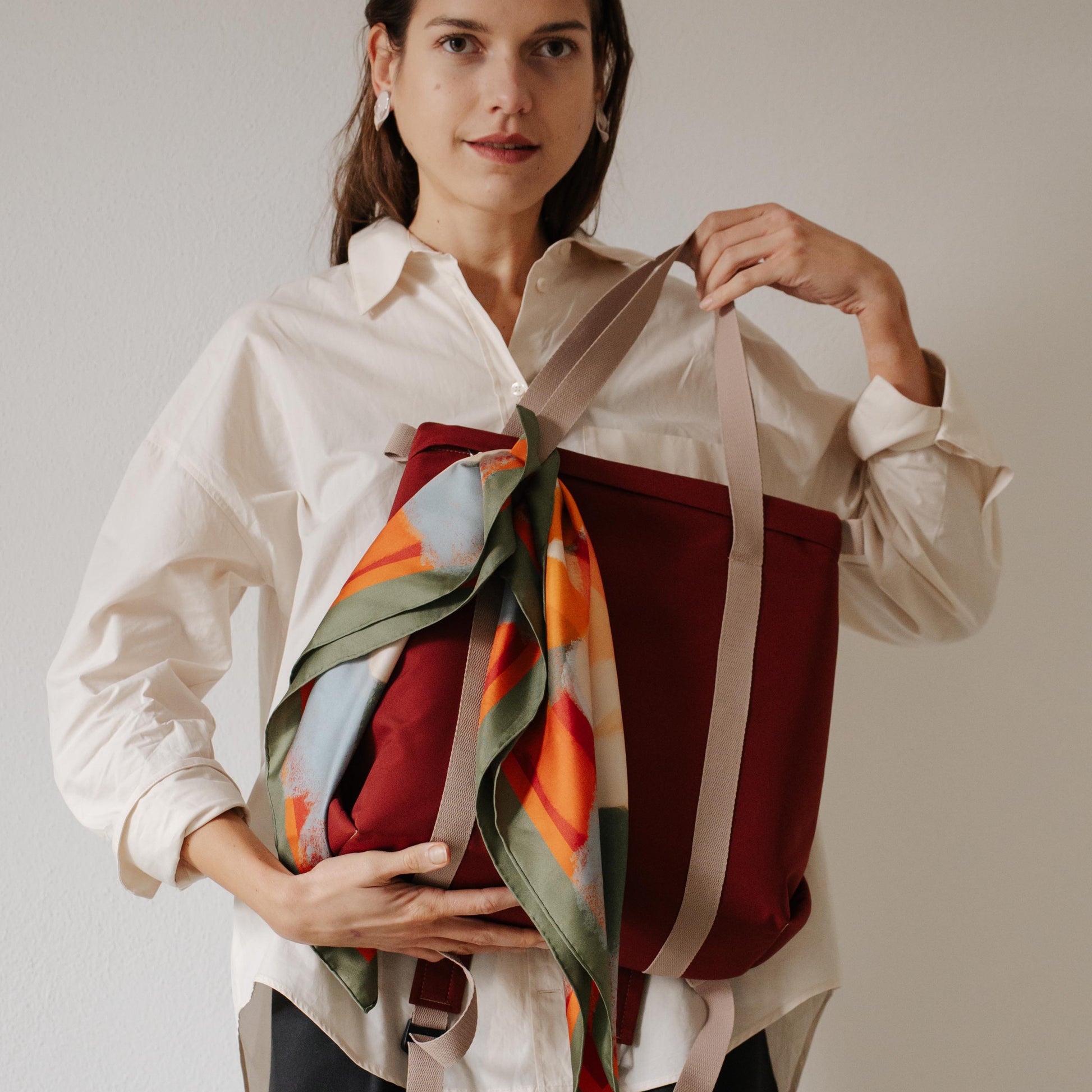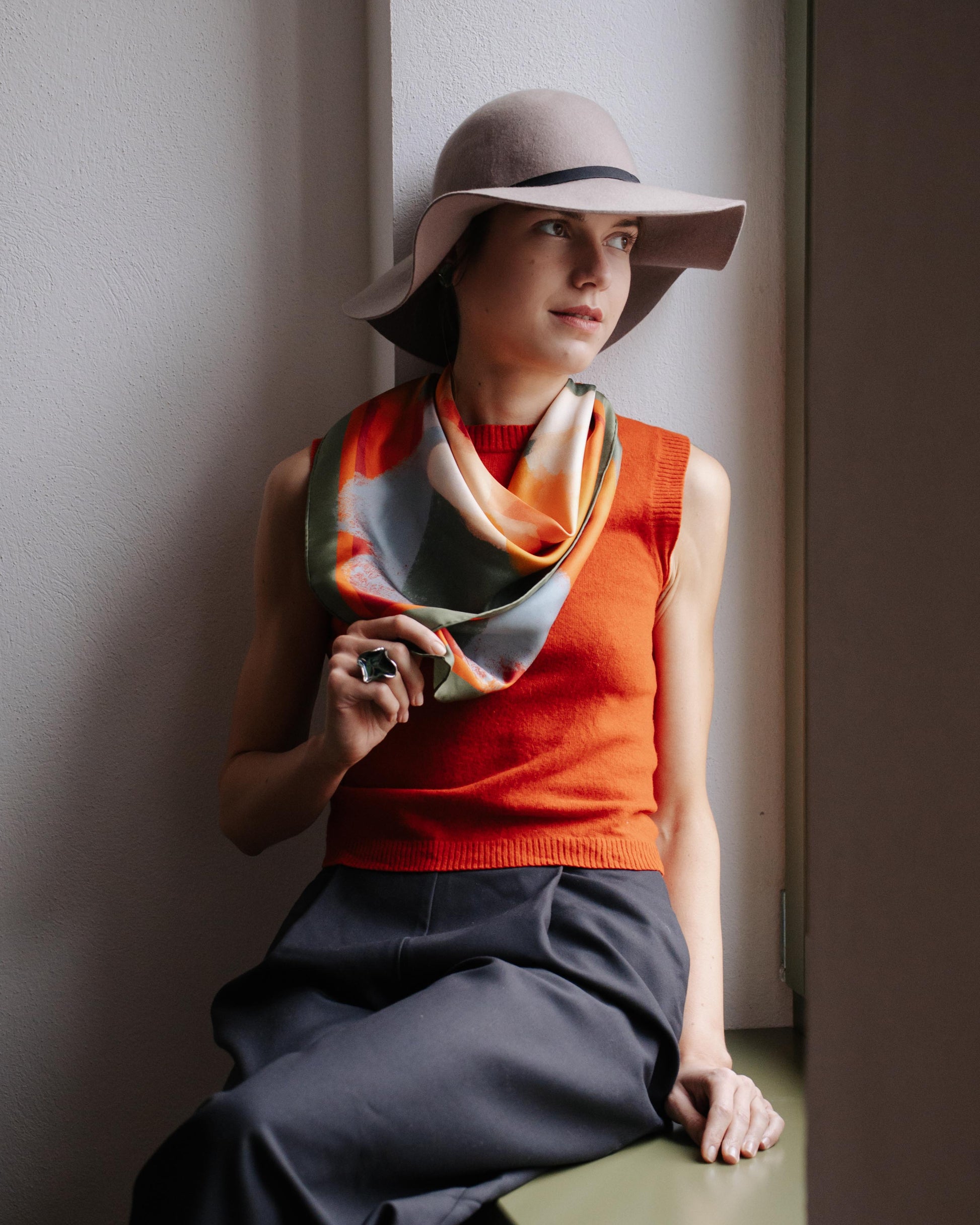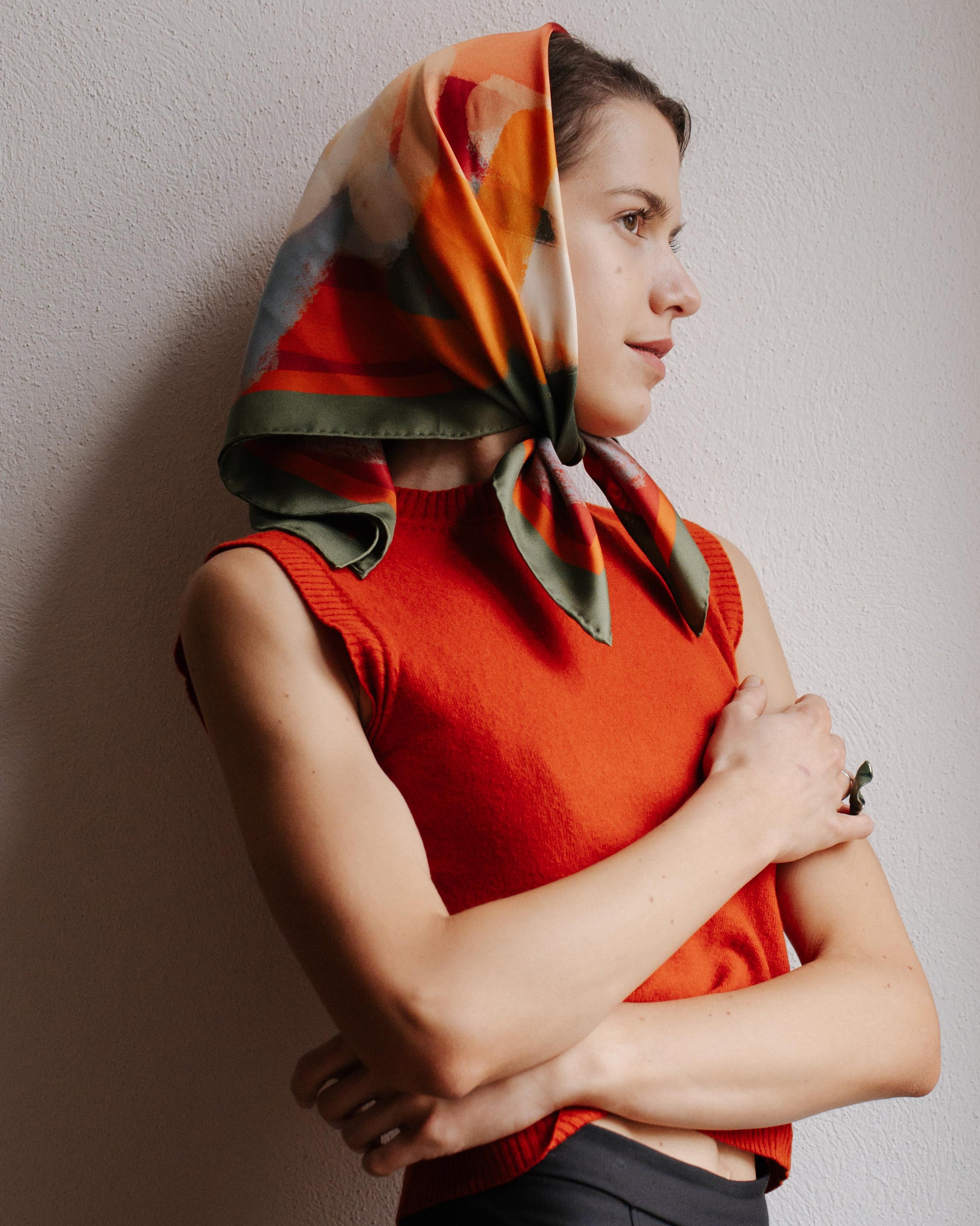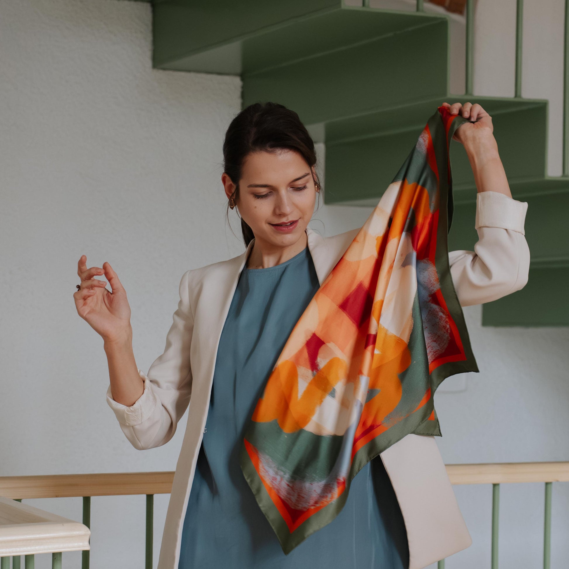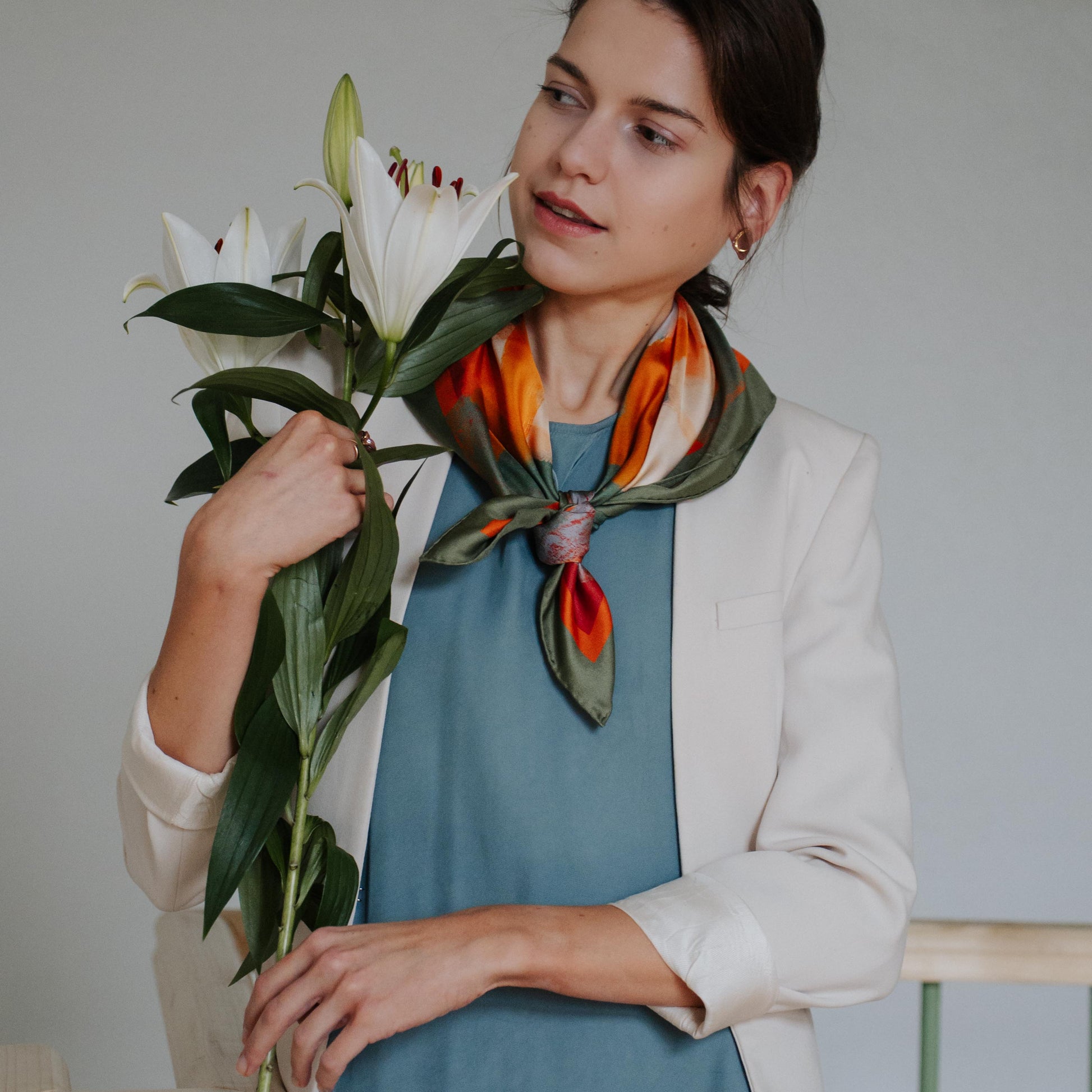 With its 65×65 cm size, it is a versatile accessory—perfect to wear as a headscarf, around the neck, on the wrist or tied to a bag. A timeless, expressive piece that elevates any outfit.
