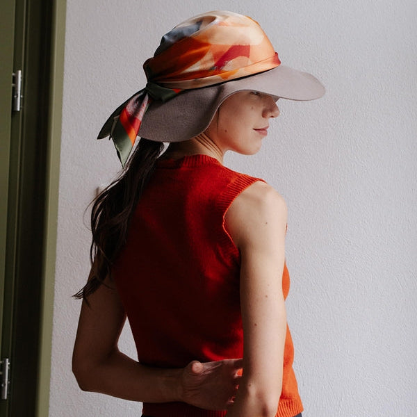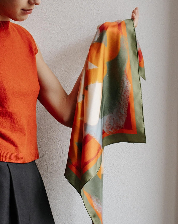 This vibrant, beautifully patterned silk scarf is crafted from premium 160 g Silk Twill, offering a smooth texture, elegant sheen and excellent drape. Its edges are hand-rolled and hand-finished, adding a luxurious touch and enhanced durability.